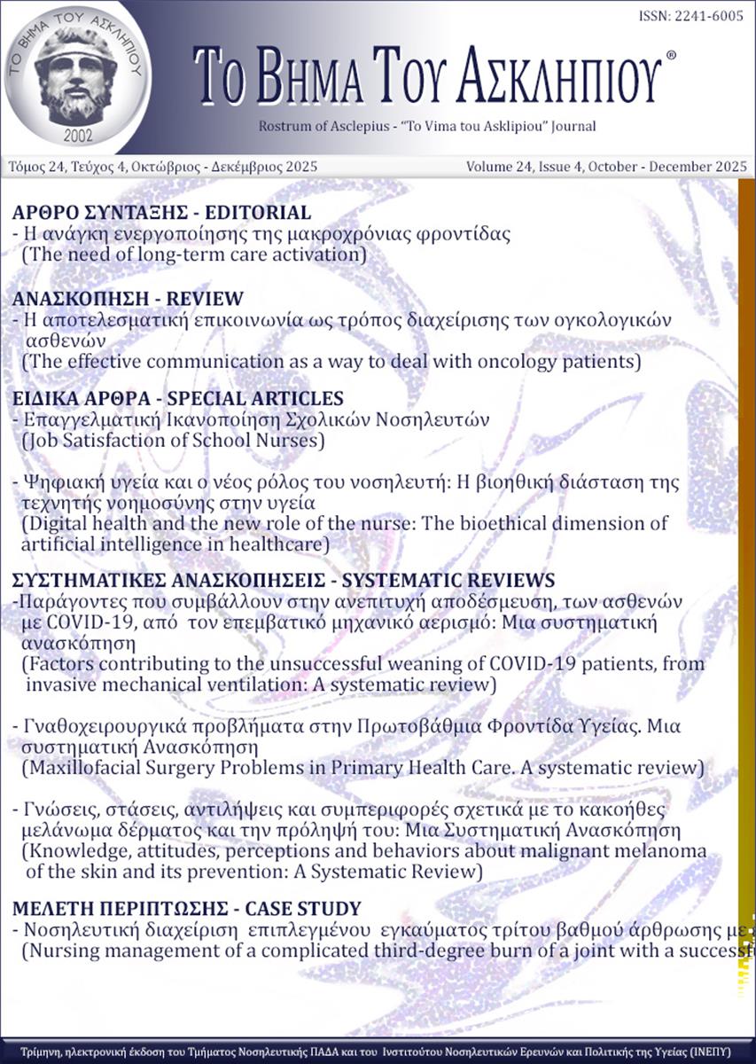 Career changes among nurses are a common phenomenon, as factors such as psychological pressure, professional burnout, and lack of job satisfaction drive many to leave the hospital sector for the field of education. The nature of the work and the demands placed on school nurses differ significantly from those in hospitals. Often, this transition may not always be smooth. Their primary responsibilities include the prevention and promotion of health within the school community. More specifically, they identify health issues, educate the school population by implementing health education programs, provide a sense of security and reassurance, help reduce student absences, and facilitate their integration into the school environment. School nurses' job satisfaction is enhanced by factors such as autonomy in decision-making, recognition of their role, appreciation and respect from colleagues, and opportunities for professional development. On the other hand, negative factors include a lack of resources (e.g., shortages in the school’s medical supplies) and infrastructure, a high student-to-nurse ratio, and the multiple roles they are required to fulfill. During the COVID-19 pandemic, they were burdened with challenging responsibilities and often faced negative reactions. Despite these challenges, the presence of school nurses contributes to improving students’ health, reducing barriers to the learning process, and supporting their academic progress.